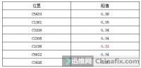 (4)给线路灌2.0V电压无明显发热点,可初步判定为电容损坏,此时采用欧姆法来判定,量测各个位置阻值大小发现C1038处阻值最小,判定C1038不良。各个位置对地阻值如下: