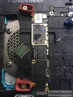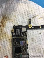 【故障分析】这种接电漏电的话针对6S一般有PP_BATT_VCC、PP_VCC_MAIN接电漏电故障。PP_BATT_VCC漏电的话可以通过打电池座正极的阻值确定,因为这一条线上的芯片比较少,所以问题应该出在PP_VCC_MAIN这条线路上面,但是肯定不是电容短路,要知道电容短路是直接最大电流的,那就锁定在主供电这条线上的芯片,如果漏电650ma左右的话,芯片应该是会微微发烫的,用手感觉主板上面的芯片发现U5200_RF芯片发烫也就是wifi发烫,问题锁定,开始动手。1.取掉WIFI,接电试机,果然不漏电了。这里分享一下,不装wifi芯片是可以开机进系统的。