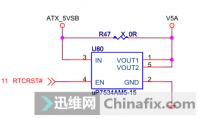 可以看到V5A由ATX_5VSB经rtcrst#控制而来,RTCRST#是rtc跳线控制的,同时受南桥影响,但是基本不爱坏。