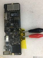 一般情况这个芯片得到这几个条件就要出PP3V3_G3H了,可是现在这个电没丝毫动静,打值有365没短路,第一也考虑这个芯片是不是坏了,上家也处理过这个芯片,那我就先不动它,换个方法看它是不是好的,就是在电池接口接个8V的电过去看下,这时拿万用表去测果然有了3.45V的电了,用示波器测电感L7095前端也有了正常的波型,到此判断芯片是好的