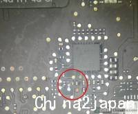 拆下主板进行观察,发现CPU供电芯片附近有点进水腐蚀。