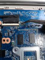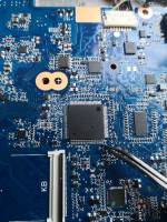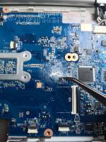 这个电脑比较新,没有图纸,和点位图元器件也用得比较新。外界显示器,显示正常,其他功能也正常,以为理成功很近了,于是,直接用3.3v开启,屏幕亮了。但触控板没用了,于是有点不甘心。理线路发现,40脚的lvds接口的屏幕控制没有开启电压,顺着这个跑线路,结果发现EC芯片上没有开启电压,再仔细查看,发现EC上有个很小的洞,