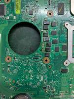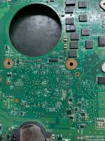 维修过程:这个机器又是那个爱自己乱修的菜鸟同行拿过来的,很烦。拆机发现这货把CPU的供电电感给换了,唉,乱修,先直接打值公共点短路,拆下CPU再次打值,公共点阻值恢复了一些,这样就说明肯定是CPU的上管击穿导致的大短,拆掉他换电感的那一路上管,再次打值公共点阻值正常, 顺便把他换的电感也一起拆了,电感下面的电流检测的线也被他弄掉了,补好后找了一样的电感换好,找了上管装上打值都正常,上电电流也有跳变,进系统测试正常。