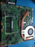 故障:进水不开机,插可调电源待机0.11明显偏高,清理进水部位后待机恢复正常,触发到0.052,风扇转,经检测内存供电只有0.126V。结果:更换内存供电芯片、上下管、自举电容,屏蔽板载内存,故障依旧,并测量到内存供电上管G-S两脚短为0001,断电后故障依旧,重新吹一下芯片就不短了,打值有560,通电后恢复原故障。因为这是本人第三次遇见这种故障,前两次也都没有图纸、芯片手册也找不到,索性这次找到了内存供电芯片手册,看看到底是哪里出了鬼。过程分享: 这是早上收到的户机器,很着急,说是昨天浇花的水壶洒到电脑上面了,当时清理了水,并拿吹风进行吹干,并没有拆机,今早还是不能亮,再三请求我尽快把机器搞好,是客户用来打发票的。拆出主板,明显已经进水不成样子了: