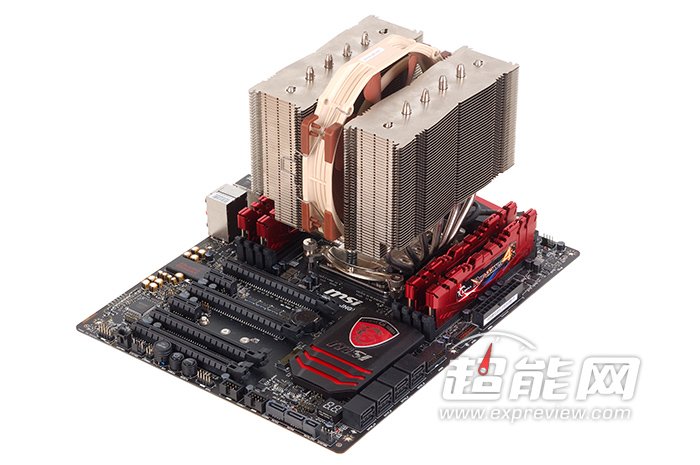 主板芯片上同样覆盖有红黑配色的金属散热片