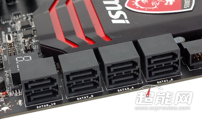 微星X99S Gaming 7主板的SATA Express接口微星X99S Gaming 7主板配置有8个SATA 6Gbps接口和1组SATA Express接口,因此起可以同时连接10个SATA接口硬盘,对绝大部分的玩家来说已经相当充足了。
