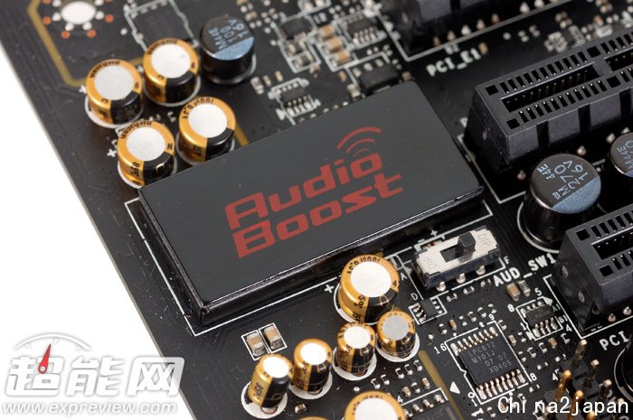 微星X99S Gaming 7主板的音频输出部分采用了第二代AudioBoost技术,整个音频区实际上是独立PCB,还配置有音频电源直供设计(附件中有单独的4pin供电线) 。音频芯片上覆盖有技术屏蔽盖,同时还搭配双重功放芯片(OPA1652耳机放大芯片)以及专业的音频电容。
