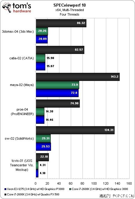 intel所谓P3000相对于HD3000在专业软件下竟然毫无提高,果然没有任何驱动实力的厂家。